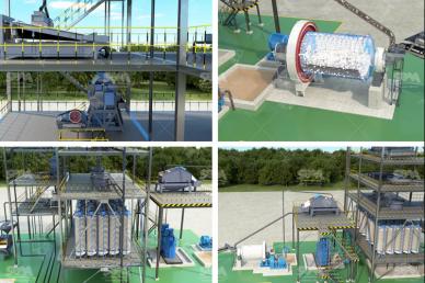 Laveur, séparateur magnétique à faible intensité, séparateur magnétique à haute intensité, machine de flottation, cuve de lixiviation acide |